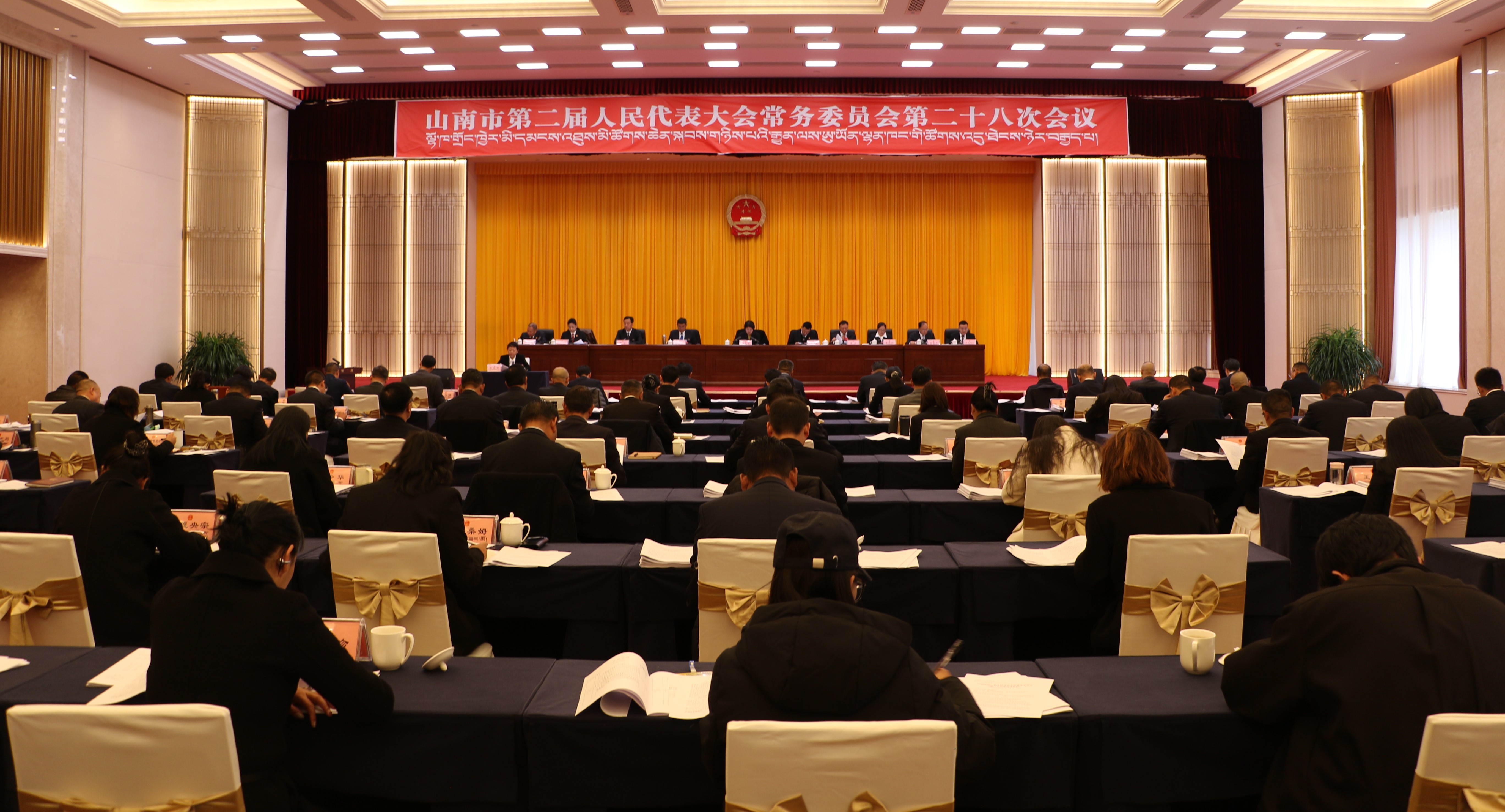 市人大常委会副主任沈百存主持并讲话,市人大常委会副主任索朗多吉、赵天武、晋美、翟坤出席,副市长刘宗昌,市中级人民法院院长卓玛央宗列席。