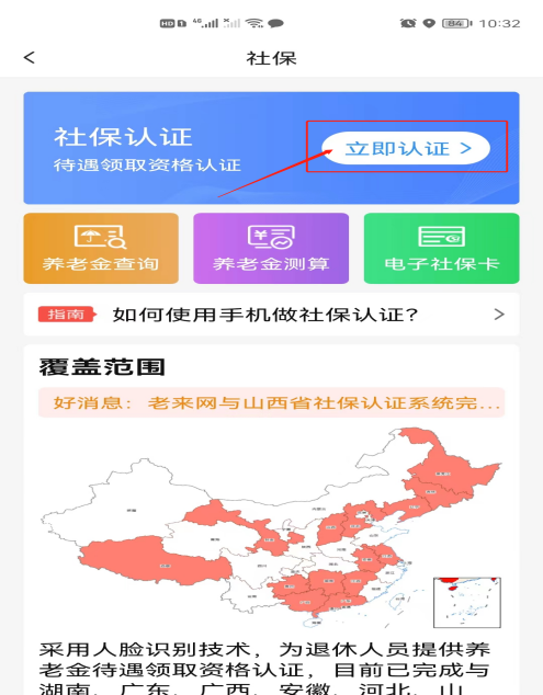 打开“老来”APP客户端→点击“社保认证”→点击“去认证”→输入人员基本信息→点击“开始认证”→点击“前置摄像头”或“后置摄像头”,根据语音提示进行人脸识别认证。如输入人员基本信息后,提示无建模信息的,点击“立即建模”,按照提示上传身份证件和本人照片,提交建模申请,待审核通过后,继续按步骤进行认证。