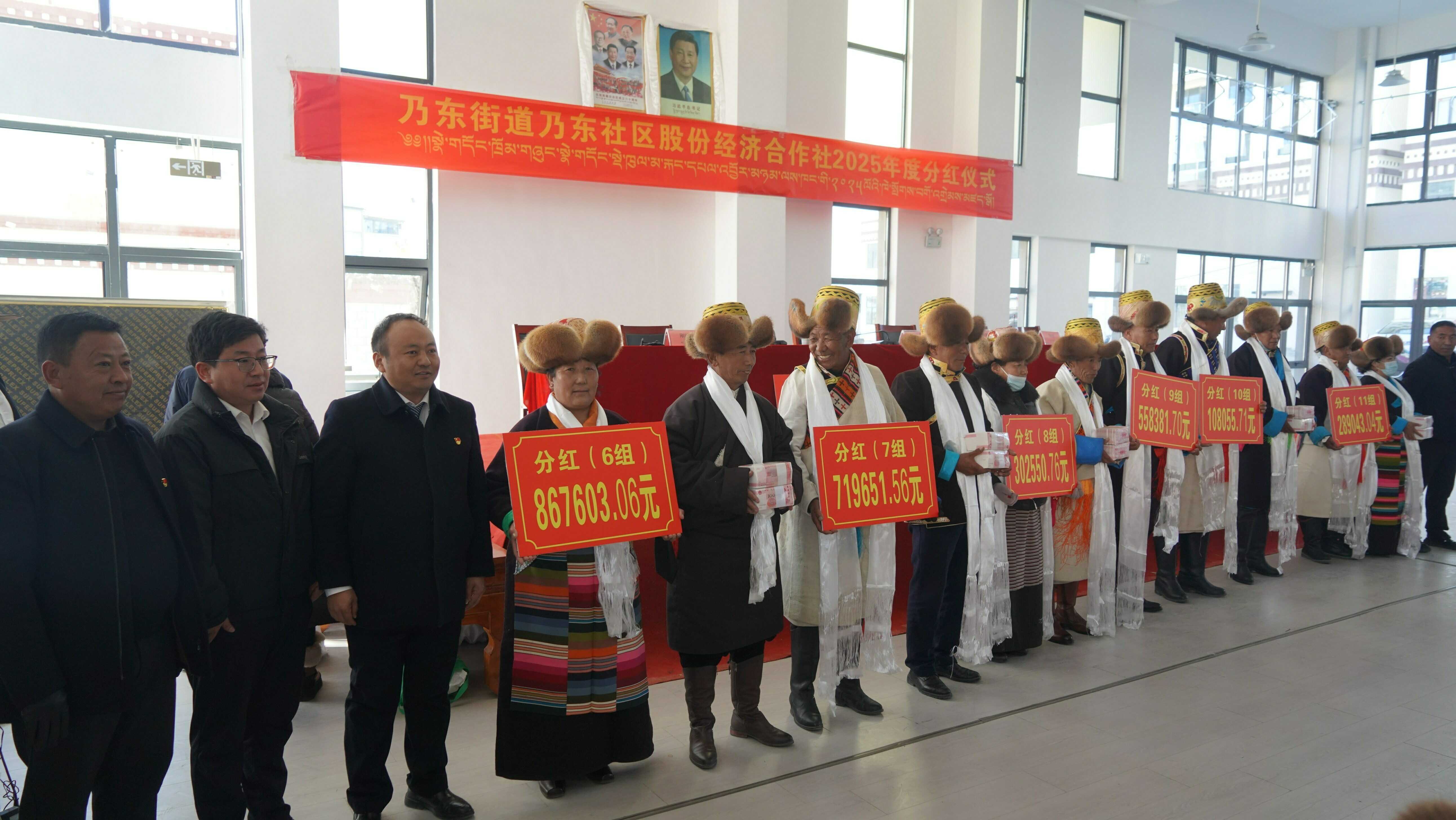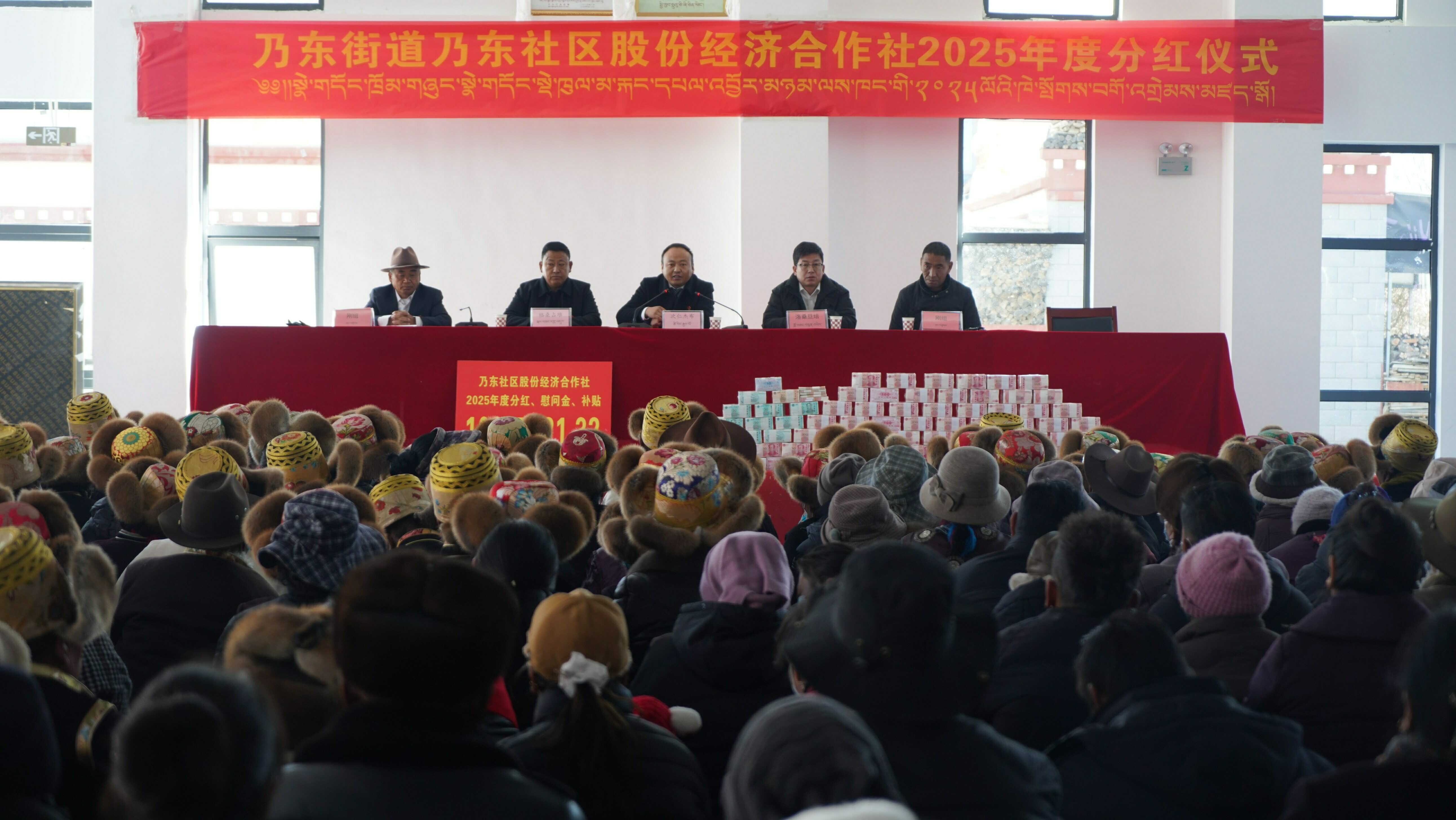 近日,西藏乃东区乃东社区股份经济合作社召开2025年度集体经济分红大会,将1008.74万元分红资金发放到全体1817名股民手中。