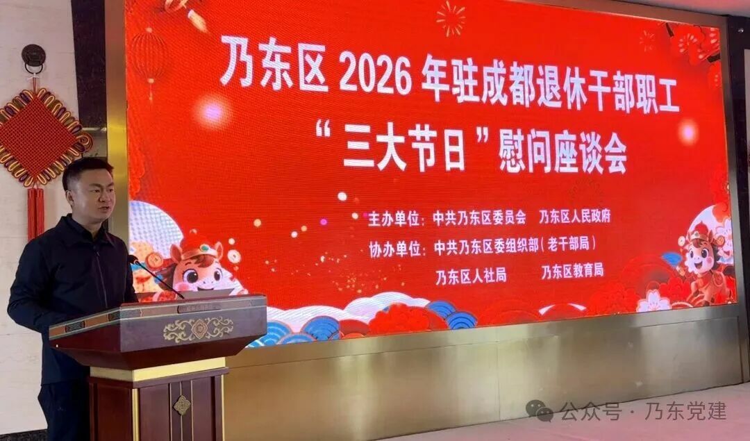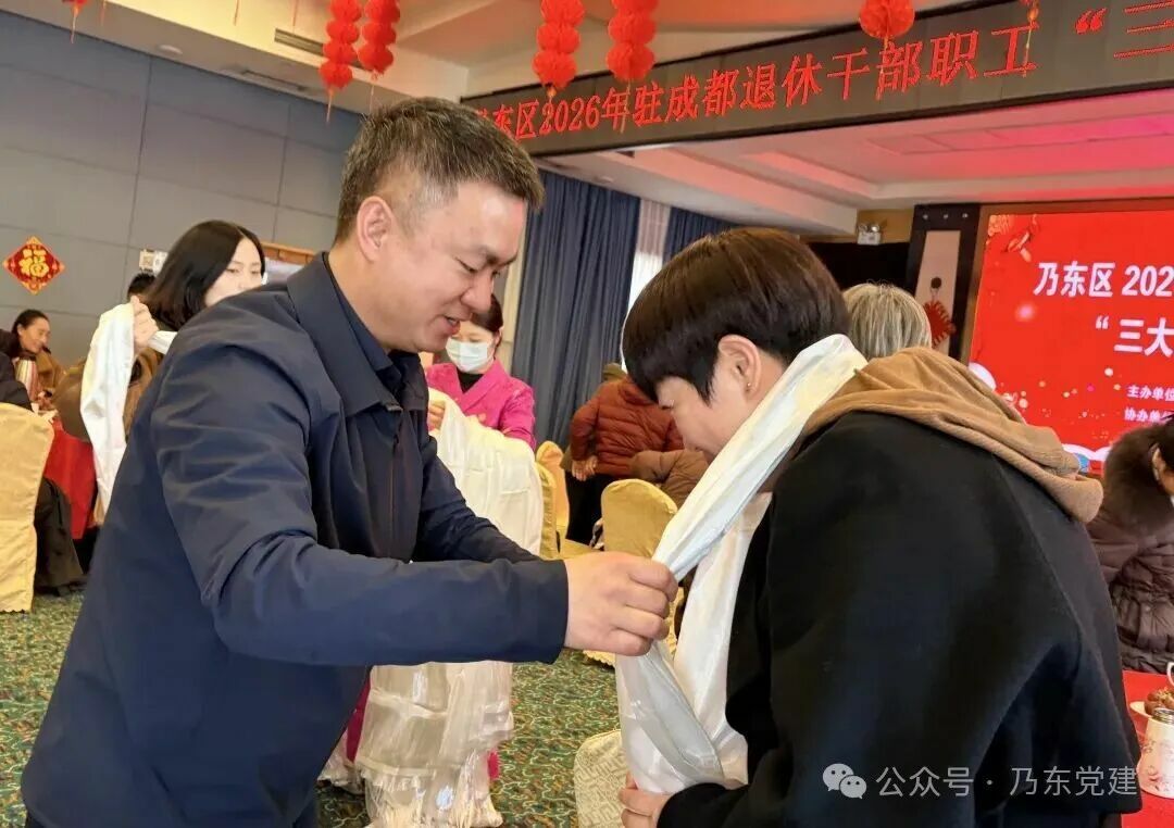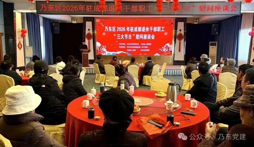 新春将至,岁寒情暖。为切实把党和政府的关怀与温暖送到退休干部职工心坎上,2月12日,乃东区委副书记、政府区长周平带队前往成都,开展驻成都退休干部职工“三大节日”慰问活动,向区外退休老同志送上诚挚的节日问候,转达各级党委、政府的关心关怀。区委常委、组织部部长张靖主持座谈会,区委组织部、区教育局相关负责同志一同随行,30余名驻成都退休干部职工参加座谈会。