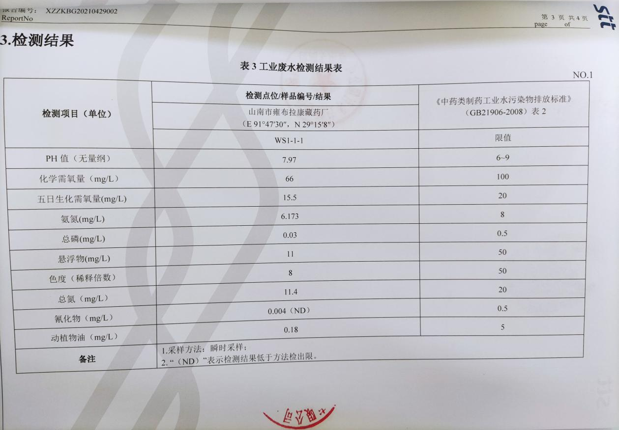 从 检测数据看, 各个医院废水:检测结果均符合《医疗机构水污染物排放标准》( GB18446-2005)中表2标准限值要求; 县藏药厂废水:检测结果均符合《中药类制药工业水污染排放标准》( GB 21906-2002)表2标准限值; 县城垃圾填埋场 废水:检测结果符合《 污水综合排放标准》(GB 8978-1996)标准限值要求;医废处置中心:检测结果符合《污水综合排放标准》(GB 8978-1996)标准限值要求;污水处理厂:检测结果符合《城镇污水处理厂污染物排放标准》(GB 18918-2002)标准限值要求。