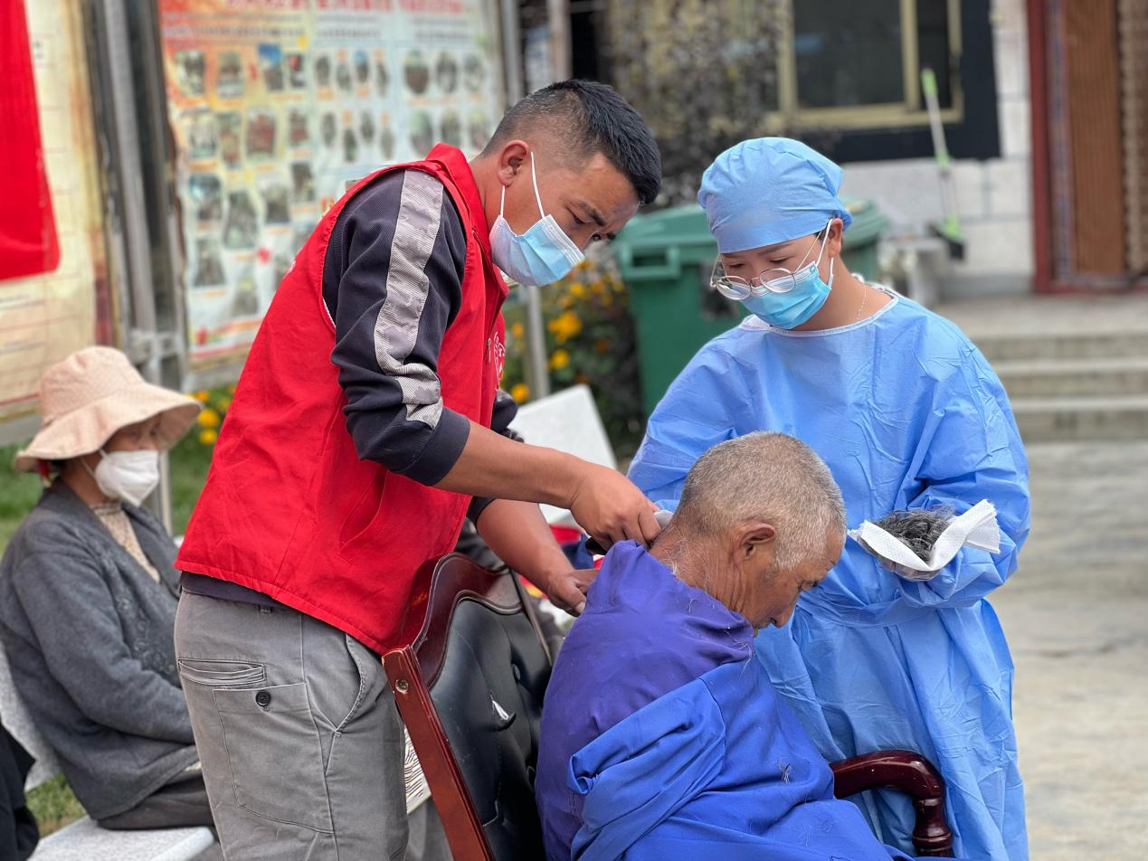 为大力弘扬中华民族尊老爱幼,助人为乐的传统美德,推动社会主义核心价值观的建设,昌珠镇色康社区新时代文明实践站组织志愿者,为社区老人提供理发志愿服务。