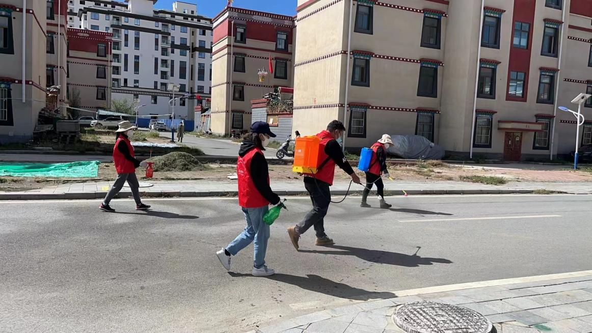 为深入贯彻落实习近平总书记关于疫情防控工作的重要指示精神,按照区委疫情防控常态化工作要求,充分发挥新时代文明实践中心志愿者示范引领作用,弘扬“奉献、友爱、互助、进步”的志愿精神,乃东区新时代文明实践中心以新时代文明实践推动日为契机组织新时代文明实践中心13+N支志愿服务队、泽当街道新时代文明实践所,各社区新时代文明实践站志愿服务队共计60余人使用各类消杀消毒用品10余箱对泽当城区内的三个社区人员密集处、主要街道、背街小巷、寻常巷陌及散户集中区的楼道、居民出入口、垃圾桶、楼梯、扶手、健身器材等公共场所采取地毯式喷洒消毒方式进行无死角消杀消毒,此外,志愿者在义务消杀之余发放防疫知识手册700余册,并不忘提醒社区居民和群众尽量少出门、勤洗手,不去空气不流通或人流密集的公众场合,外出务必戴好口罩,经常开窗换气、保持室内空气流通,把好疫情防控第一关。