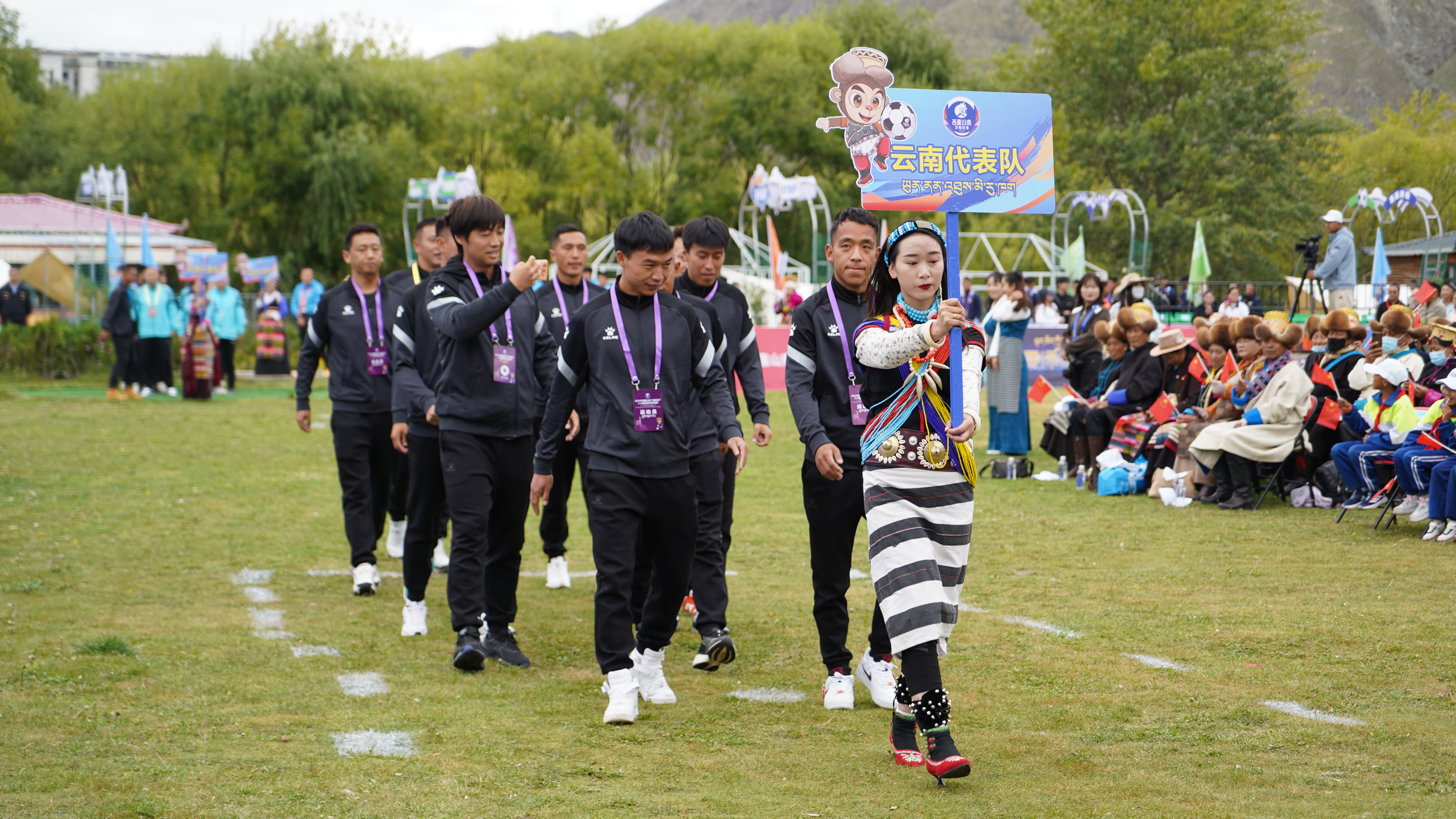 上午10时,在激昂的音乐声中,开幕式正式拉开帷幕。伴随着主持人的热情开场,来自陕西、贵州、湖北、湖南、四川、云南、青海、西藏的9支足球代表队162名队员依次步入会场,他们精神抖擞,士气高昂。
