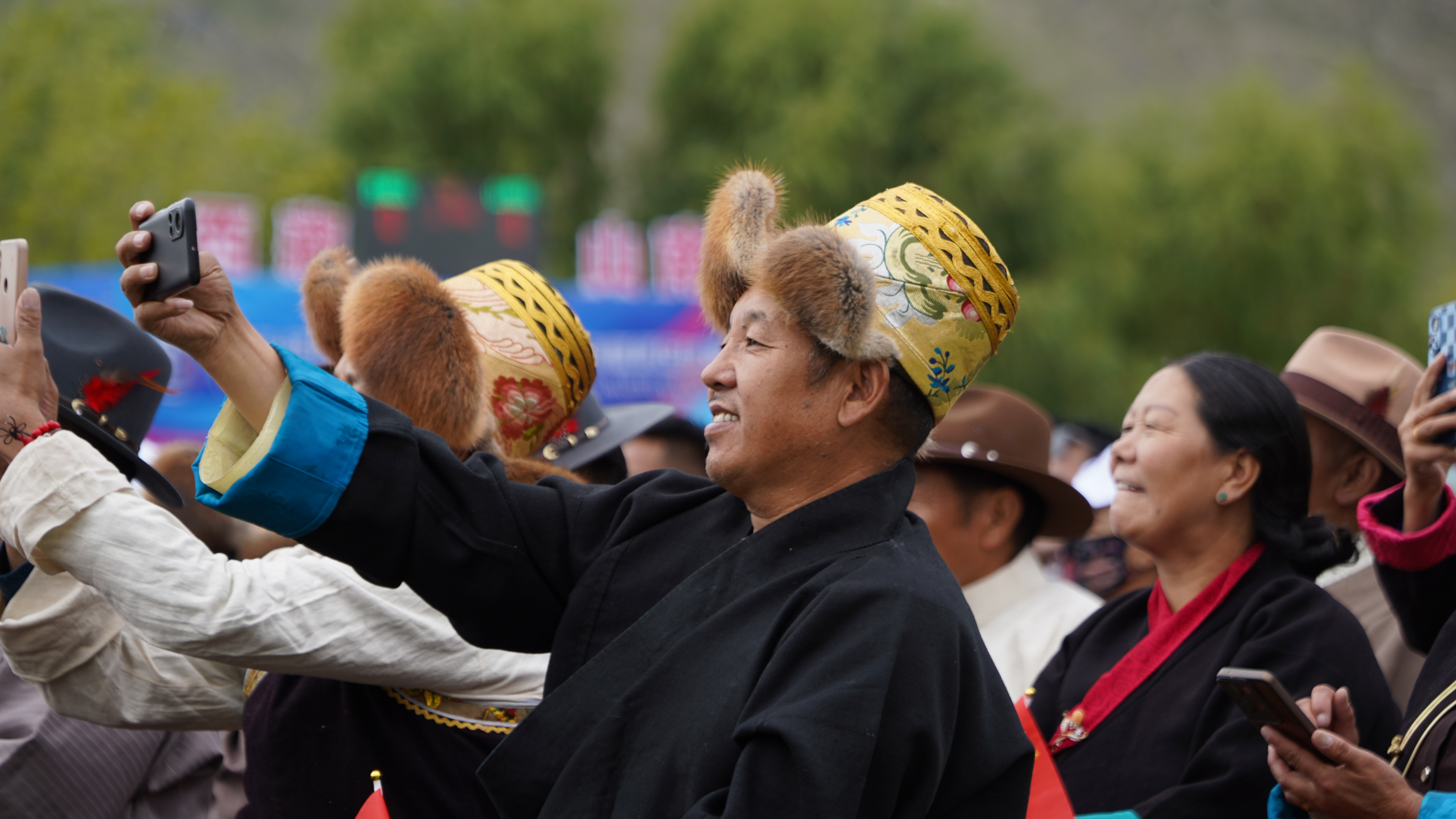 现场人头攒动,热闹非凡,观众们的欢呼声此起彼伏,将雍布岛装点得如同欢乐的海洋。舞台中央,雅砻扎西雪巴藏戏面具伴随着音乐缓缓转动,一幕幕经典的藏戏表演依次上演。演员们身着华丽的戏服,以精湛的演技将传统故事演绎得栩栩如生,让现场观众仿佛穿越时空,感受到了藏民族文化的深厚底蕴。随着雅砻扎西雪巴藏戏的欢快节奏,现场气氛逐渐升温。