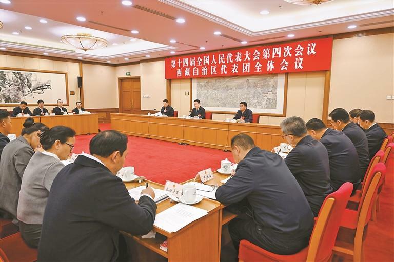 西藏代表团举行全体会议审议大会有关决议决定草案王君正主持并讲话严金海嘎玛泽登参加