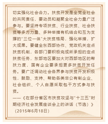 为深入学习贯彻习近平总书记关于扶贫工作重要论述、重要指示、批示精神,进一步在乃东营造决战脱贫攻坚,决胜全面小康的浓厚氛围,乃东融媒体中心持续推送脱贫攻坚相关知识。大家一起来学习习近平扶贫论述摘编(五)坚持社会动员,凝聚各方力量