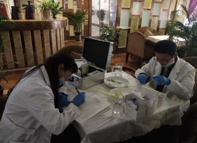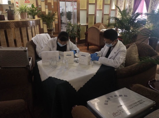 小考期间正值夏季高温天气,各类食源性疾病及食物中毒事故进入易发、高发期,食品安全风险增大。工作人员现场详细查看了供餐单位食品原料采购、进货查验、餐饮具清洗消毒、食品留样、食品烹饪就餐等情况,对存在的问题工作人员要求立即整改。并对供餐单位提出要求:一是有效落实食品安全主体责任,切实提升小考期间学生饮食安全;二是认真做好餐饮具消毒,严格把控餐饮具的清洗消毒时间、流程并做好记录,防止交叉污染;三是成立应急领导小组,制定应急预案,一旦发生食品安全突发事件能够迅速采取措施,及时有效处置。同时对各类食品材料现场进行食品快速检测,主要对大米新鲜度、蔬菜农药残留、食用油酸价等进行检测。通过检测,各类食品原材料均显阴性为合格。