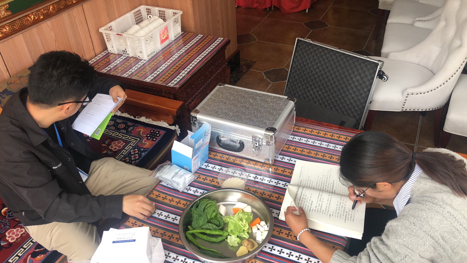 小考期间正值夏季高温天气,各类食源性疾病及食物中毒事故进入易发、高发期,食品安全风险增大。保障中,工作人员与供餐单位签订了《重大活动定点餐饮单位食品安全责任承诺书》,要求酒店要有效落实食品安全主体责任,切实提升食品安全管理水平,认真做好餐饮具消毒,严格把控餐饮具的清洗消毒时间、流程并做好记录,防止交叉感染。同时对酒店食堂从业人员健康管理、食品原料采购、进货查验、食品留样、食品烹饪、操作间环境卫生等情况进行检查。工作人员针对检查中发现的餐饮具清洗、消毒不彻底的问题,立即责令该酒店整改。并对食品原材料进行快速检测工作,保障期间湖北省第九批短期援藏技术人才夏勇老师全程进行指导,工作人员共抽检12个品种,25个批次,检测合格率为全部达到100%。